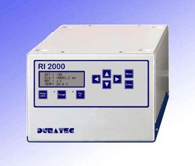 The differential refractive index detector RI2000 offers the sensitivity, stability and reproducability required for an optimal RI detection. The thermal isolated optic with a countercurrent heat exchanger and with its programmable temperature control, results in an extremly stable baseline and an optimal signal to noise ratio.