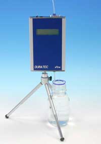 The liquid flowmeter vFlow measures the real flow rate of a liquid stream (0.05 ml/min ... 10 ml/min). It determines the required time for filling a measuring tube with a constant volume. The LCD display (w/backlight) shows the measured value and the filling status. As soon as a new flow rate is calculated, the value is sent via RS-232-interface to a computer or printer as data logger.